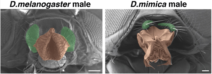 The now-textbook McGinnis experiment tested whether the proteins produced by a human or mouse Hox gene could function in flies. Following in these footsteps, the new study leveraged modern CRISPR gene editing to investigate whether all aspects of Hox gene function, which consists of both protein coding and control regions, could be replaced in a common laboratory fruit fly (Drosophila melanogaster) with its counterpart from a rarer Hawaiian cousin (Drosophila mimica), which has a very different face.