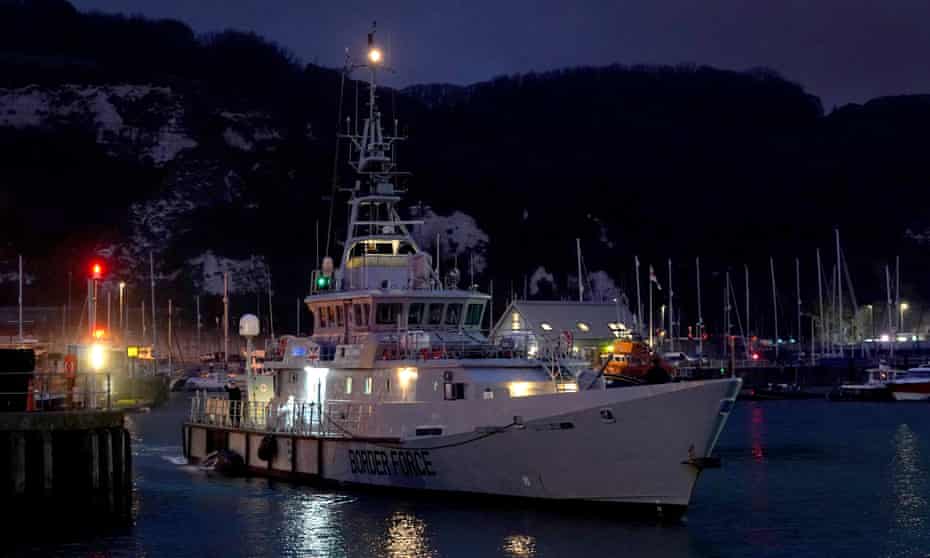 The Border Force vessel Seeker leaves the Port of Dover in Kent on 11 November.