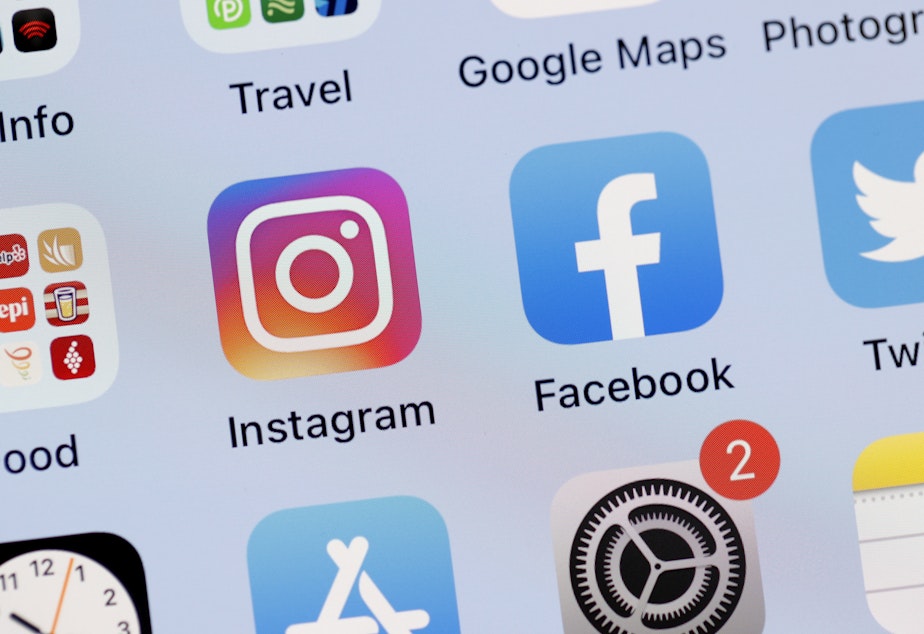 In this photo illustration, the Facebook and Instagram apps are seen on the screen of an iPhone.