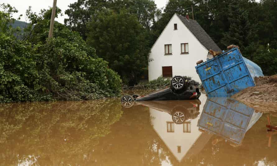 The dangers of global heating were illustrated by extreme weather events around the world, including destructive flooding around in the Rhineland and its environs. Photograph: Adam Berry/Getty Images