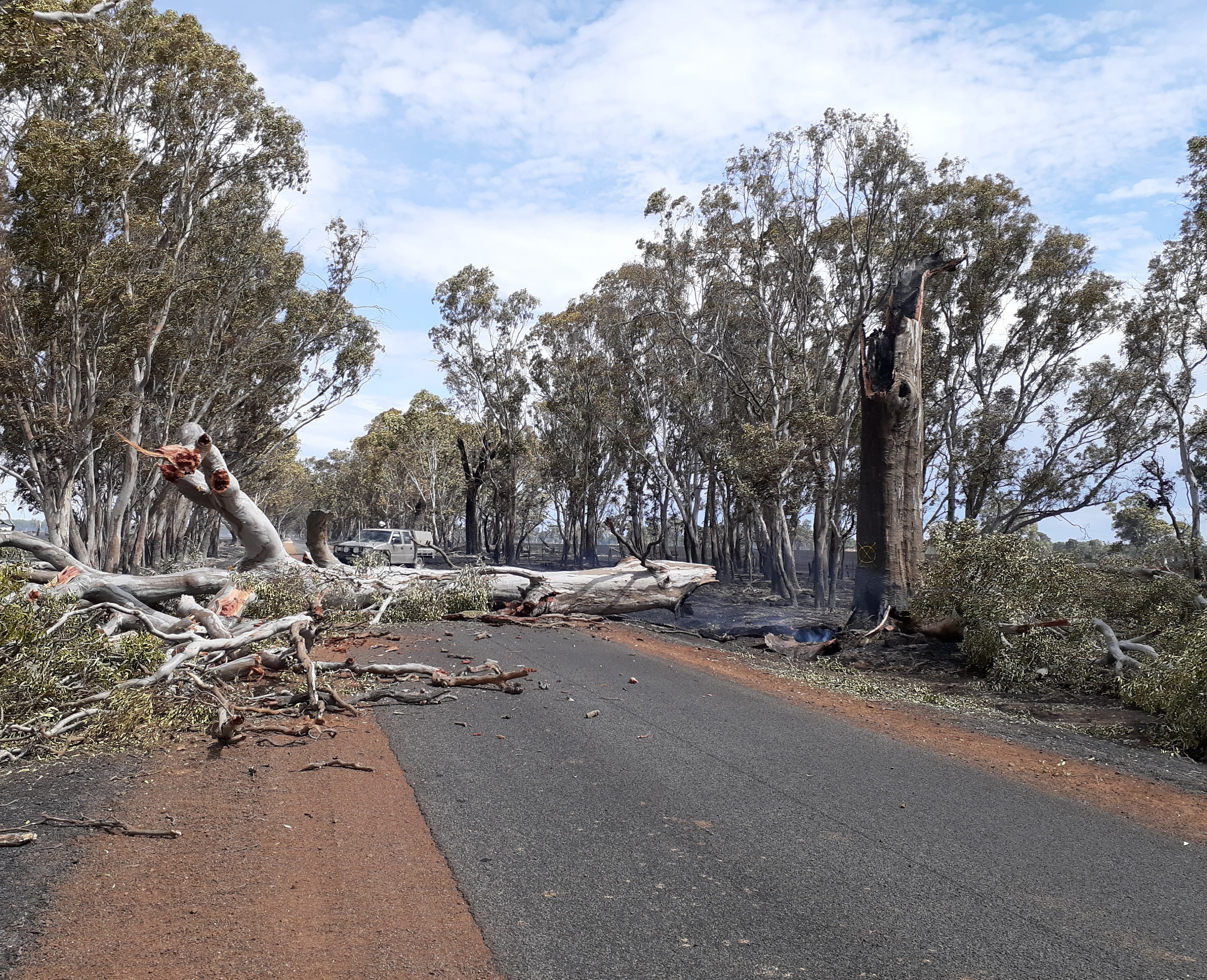 Poolaijelo farming community on Victoria-SA border counts cost of New Year grassfireRoads in the West Wimmera will remain closed while fire-affected trees are removed.
