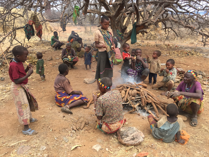 Peer-Reviewed PublicationIMAGE: A GROUP OF HADZA WOMEN SHARE A MEAL OF ROASTED TUBERS. COMBINING HUNTING AND GATHERING WITH FOOD SHARING, GROUP MEMBERS CAN RISK SPENDING A LOT OF ENERGY TO FIND FOOD KNOWING THEY WON’T STARVE IF THEY RETURN TO CAMP EMPTY-HANDED. view more