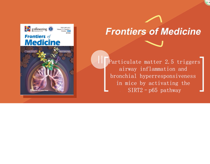 Air pollutants comprise a complex mixture of airborne particles such as gases, liquids, and particulate matter (PM). Particulate matter 2.5 (PM2.5) refers to fine particles with aerodynamic equivalent diameter less than or equal to 2.5 μm in ambient air. It is one of the most harmful air pollutants that can be deposited in bronchi and alveoli through inhalation. Moreover, PM2.5 can even penetrate the air–blood barrier into the blood circulation. Epidemiological studies have shown a relationship between PM2.5 exposure and adverse health outcomes, including respiratory diseases, cardiovascular diseases, type 2 diabetes, and autoimmune diseases. Nevertheless, the mechanisms underlying PM2.5-induced airway inflammation remain largely unexplored. Fourth Military Medical University professor Qiong Wang and Heng Ma provide a novel mechanism underlying PM2.5-induced airway inflammation and bronchial hyperresponsiveness. This study entitled “Particulate matter 2.5 triggers airway inflammation and bronchial hyperresponsiveness in mice by activating the SIRT2–p65 pathway" is published in Frontiers of Medicine on Nov. 2021.