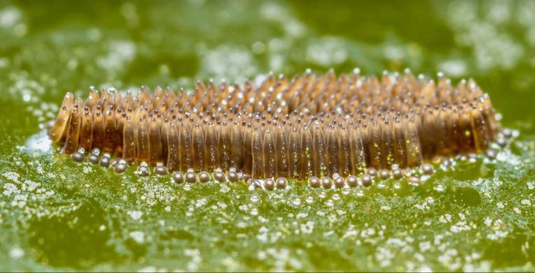 Mosquito eggs float on the surface of a pond. The insecticide Bti is used to kill mosquito larvae, but it could also harm frogs. (Shutterstock)