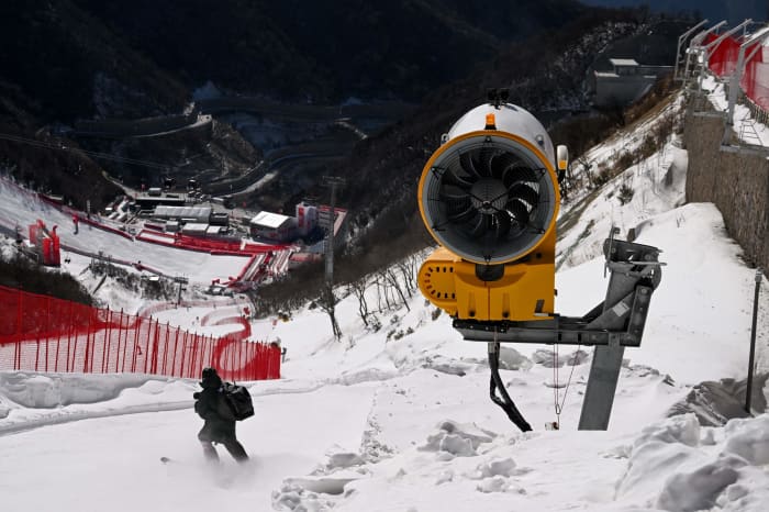 The IOC said artificial snow is used regularly at World Cup ski competitions and denied that it makes courses more dangerous: “To the contrary, it creates a more consistent surface from the top to bottom, or start to finish, of a course.”