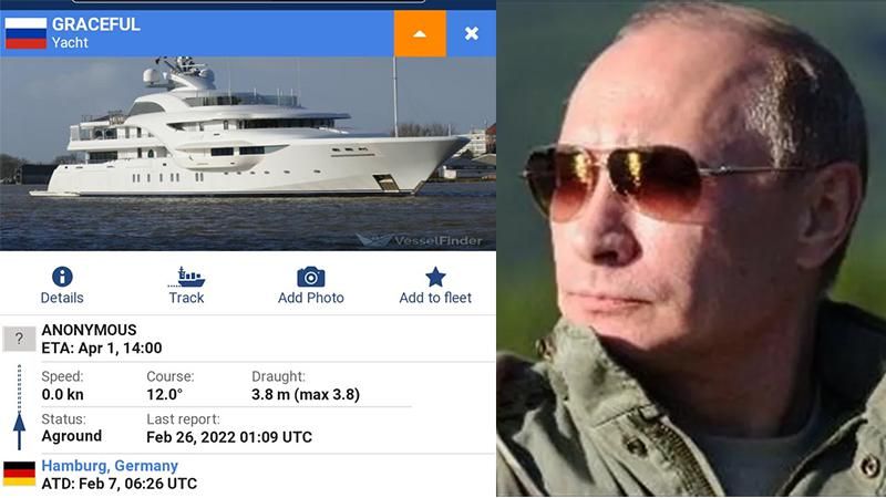 Vladimir Putin's yacht, Graceful, appears to have a different call sign on a few yacht tracking websites.