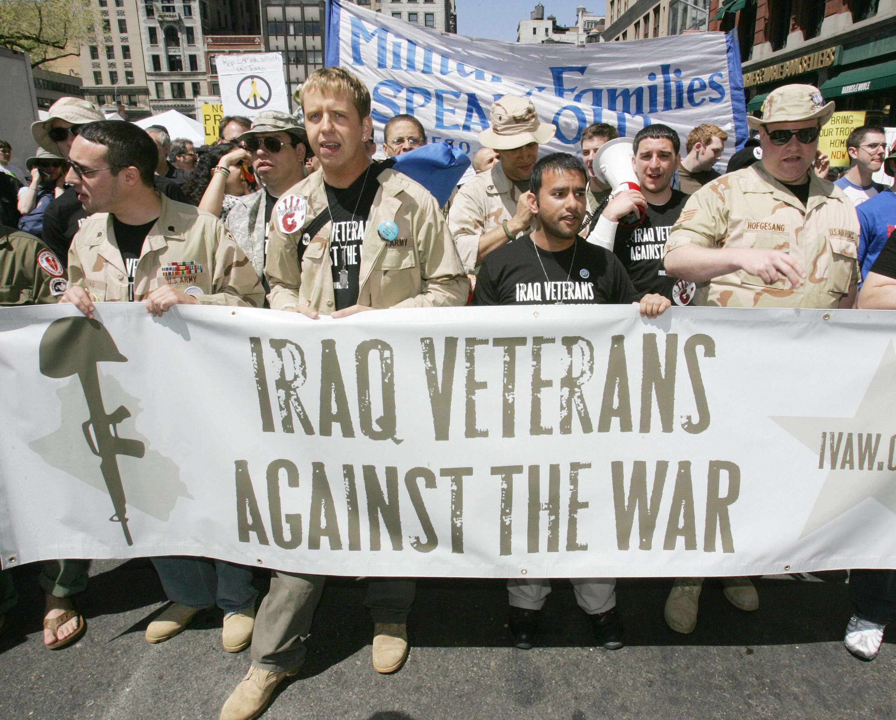 Iraq veterans march in an anti-war rally on April 29, 2006 in New York. Thousands gathered to protest the war in Iraq and the policies of former President George W. Bush.(Photo: Don Emmert/AFP via Getty Images)29,