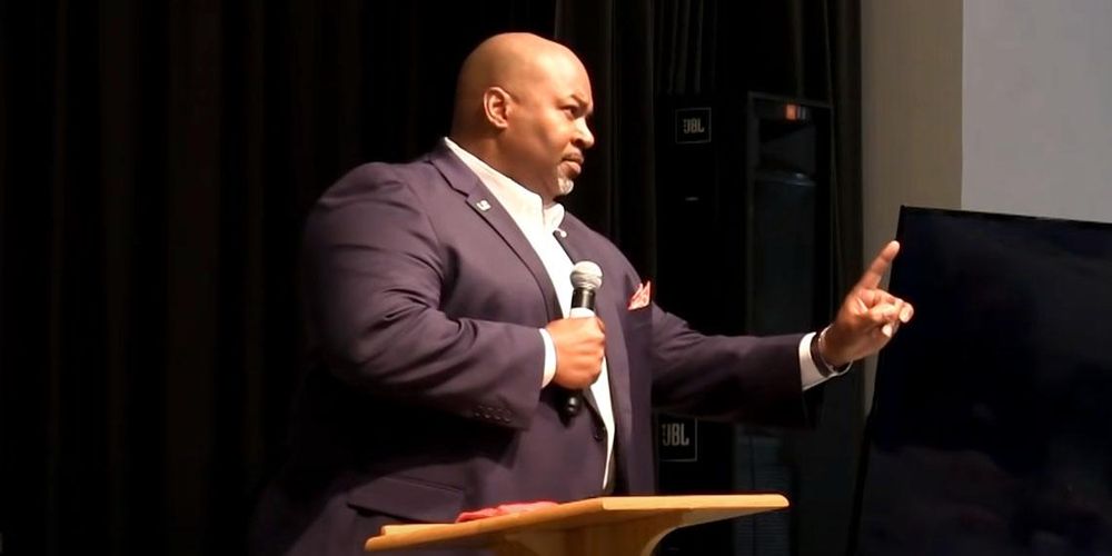 Mark Robinson's delivering a speech. (Screenshot/YouTube.com)