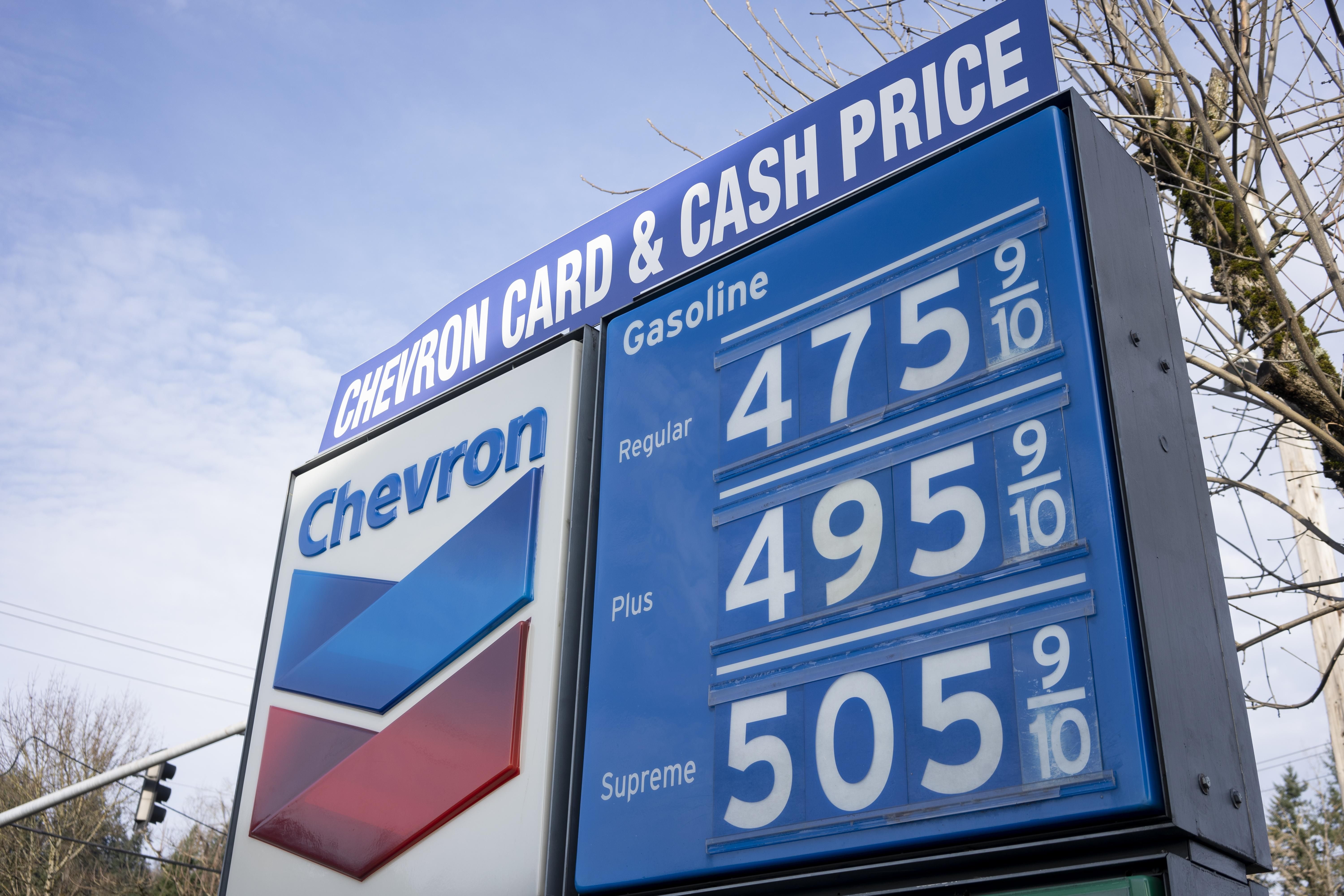 The gas price sign at a Chevron gas station in West Linn, Oregon. Oil and gas prices are soaring due to Russia's war in Ukraine and price-gouging by the fossil fuel industry. (Photo: hapabapa/iStock/Getty Images)
