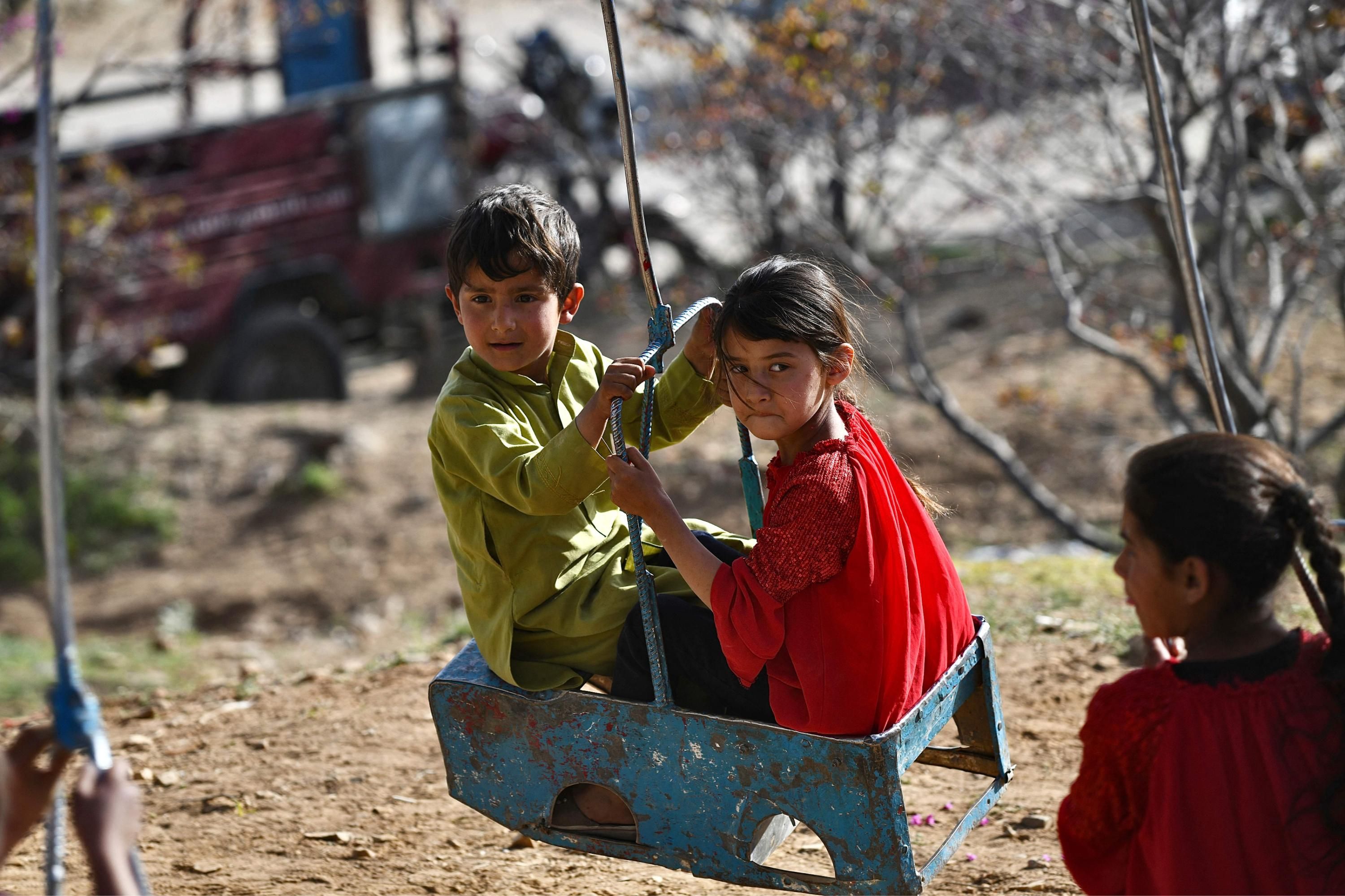 Children ride on a merry-go-round at the Gol Ghandi Park in Charikar of Parwan province in Afghanistan on March 25, 2022. (Photo: Ahmad Sahel Arman/AFP via Getty Images)