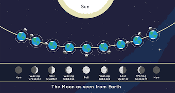 The positioning of the Sun, Moon, and Earth causes certain Moon phases throughout the month. NASA/JPL-Caltech