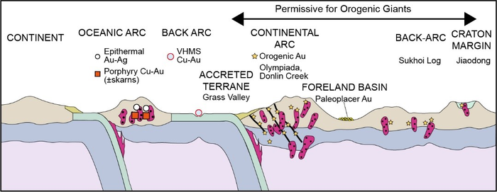 IMAGE: CONVERGENT MARGIN-OROGENIC GOLD MODEL SHOWING RANGE OF TECTONIC SETTINGS FOR OROGENIC GOLD SYSTEMS WITHIN A CONSISTENT GEODYNAMIC ENVIRONMENT. view more