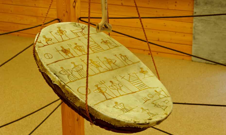 The Sámi people – whose population of 60-70,000 is scattered through Sweden, Norway, Finland and Russia’s Kola peninsula – have long been the victims of internal colonialism, their views sidelined in the rush for natural resources, whether timber, nickel or even wind power. Now they find themselves on the frontline of climate crisis, with rising temperatures affecting Arctic weather patterns, ecosystems, and traditional ways of living such as reindeer herding. But, with a revival in political self-consciousness, and a young generation taking back the dwindling Sámi languages and taking pride in their culture, the people of the Sápmi nation are taking their place among a network of Indigenous peoples from around the world, notably those from the Amazon, who are increasingly being recognised as holders of knowledge that may yet help the wider world tackle climate crisis. Later this month, too, Sámi artists will step on to the global stage when they exhibit in the Nordic pavilion – renamed this year the Sámi pavilion – at the world’s most celebrated international art event, the Venice Biennale. The Sámi drum is a powerful symbol of a people insisting on the validity of their belief systems – systems that tell us that humans, animals and land are intimately connected, and that harm to one means harm to all.