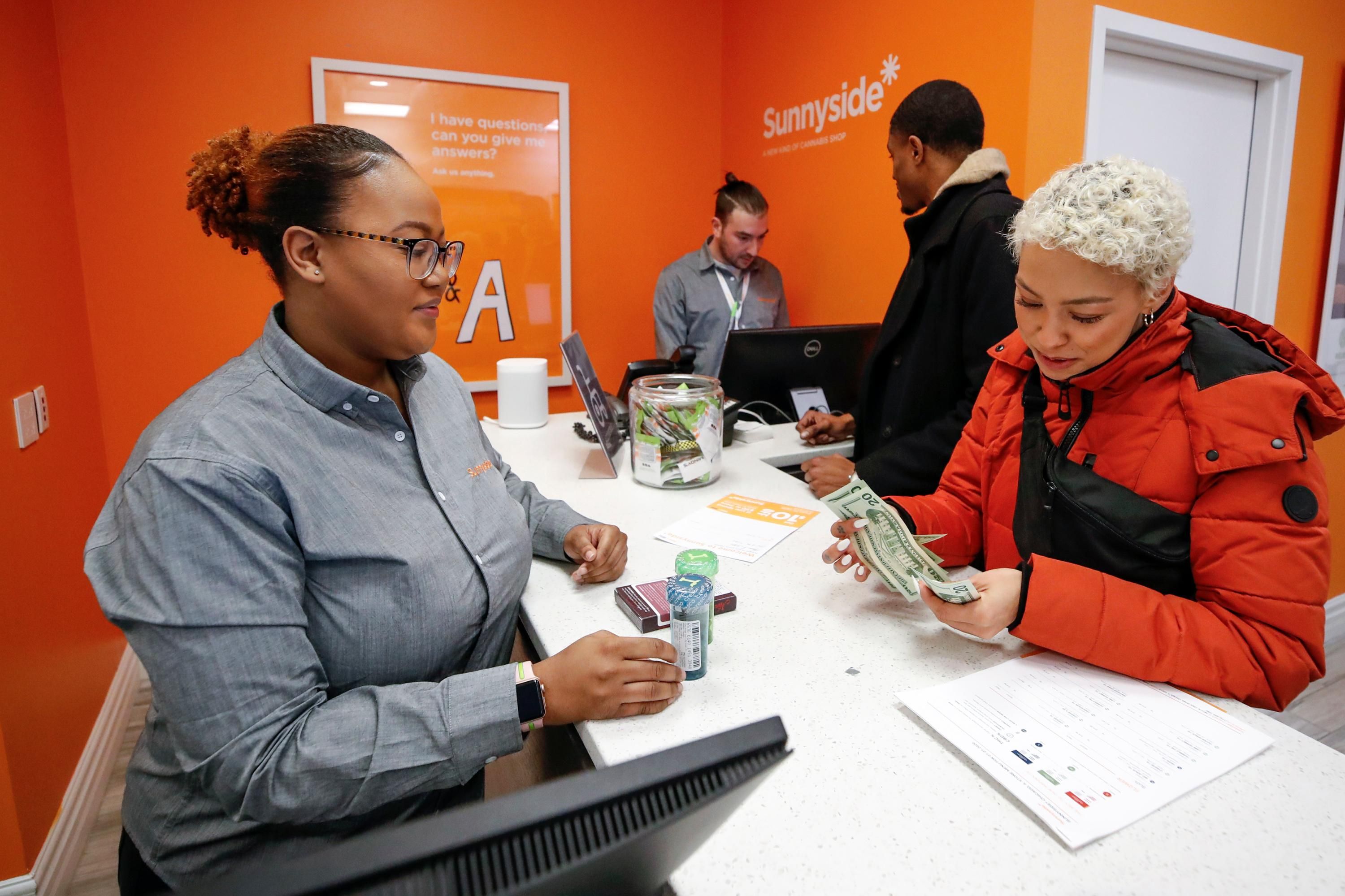A customer makes a purchase at Sunnyside Cannabis Dispensary on January 1, 2020 in Chicago, Illinois. (Photo: Kamil Krzaczynsi/AFP via Getty Images)