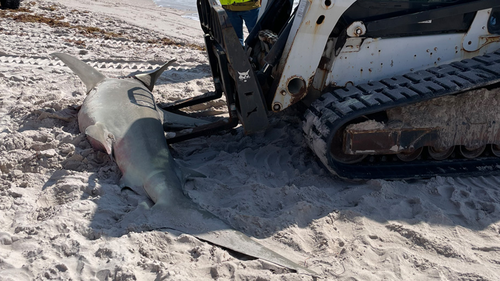 A team of scientists from the American Shark Conservancy took samples and identified the shark as a female great hammerhead, after moving the body away from onlookers.