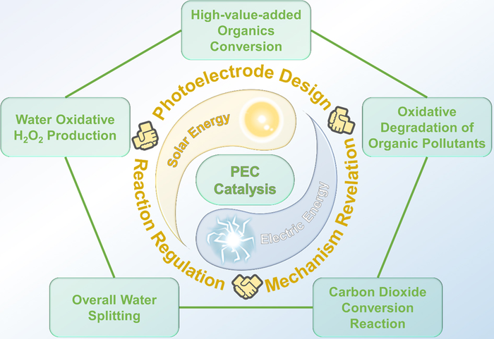 Recently, a research team led by Prof. Mingfei Shao from Beijing University of Chemical Technology, China reported an Account that discusses the use of PEC technology to produce various high-value-added products and environmental treatment applications, where several PEC systems are discussed, including PEC water splitting, PEC organic oxidation coupled with hydrogen evolution, and PEC carbon dioxide reduction reaction. Based on the opinion of regulating the photoelectrode to match the production reaction of high-value-added chemicals and ensuring selectivity is the core of this field, the development of future PEC systems is also prospected. The results were published in Chinese Journal of Catalysis (https://doi.org/10.1016/S1872-2067(21)63923-2).