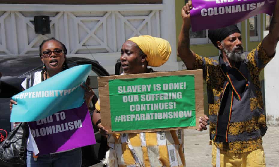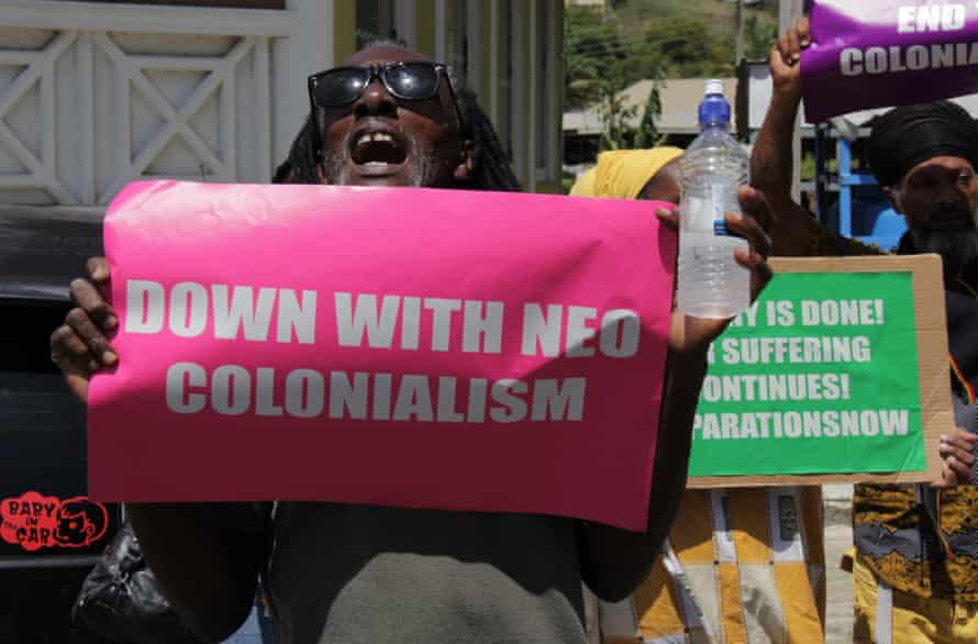 Jomo Thomas, a former chair of the St Vincent and the Grenadines National Reparations Committee, was also among protesters. He called for reparations from Britain.