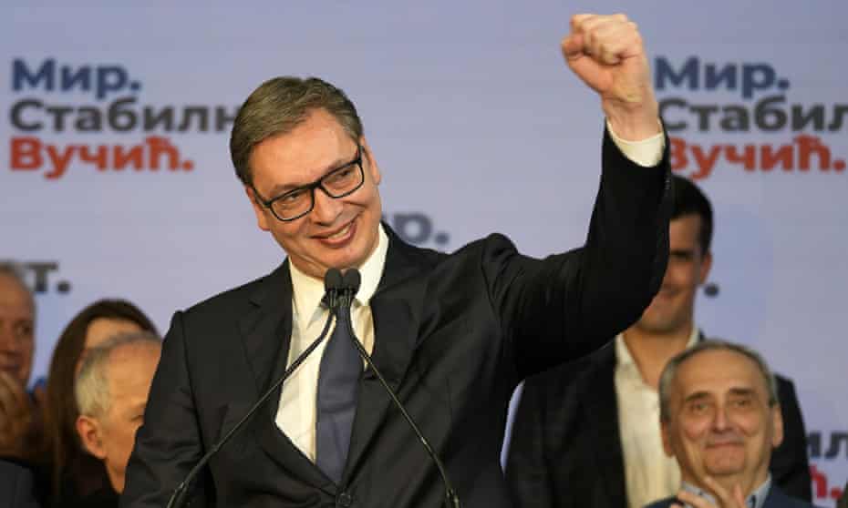 Serbian leader Aleksandar Vučić declares victory in the presidential election in Belgrade on Sunday, securing a second term.