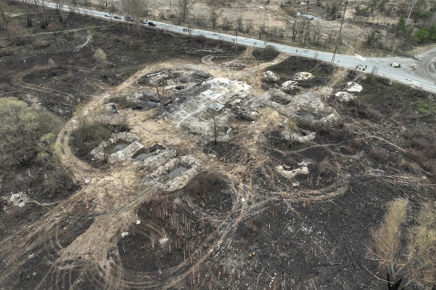 Trenches dug by the Russian military are seen in an area with high levels of radiation called the Red Forest, near the Chernobyl nuclear power plant.