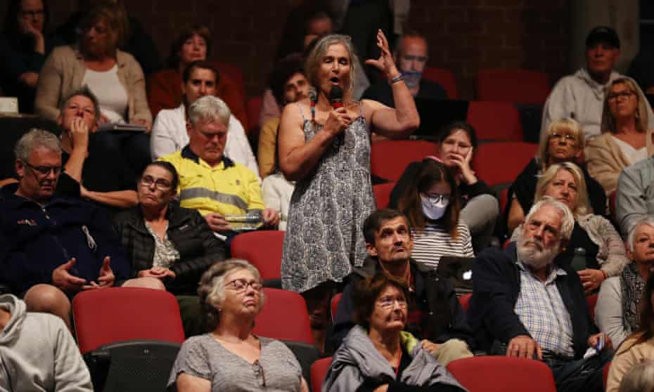 The only agitation was when a woman spoke about being traumatised by the floods, which she attributed to climate change and a reliance on fossil fuels. She was met with applause and a couple of boos.