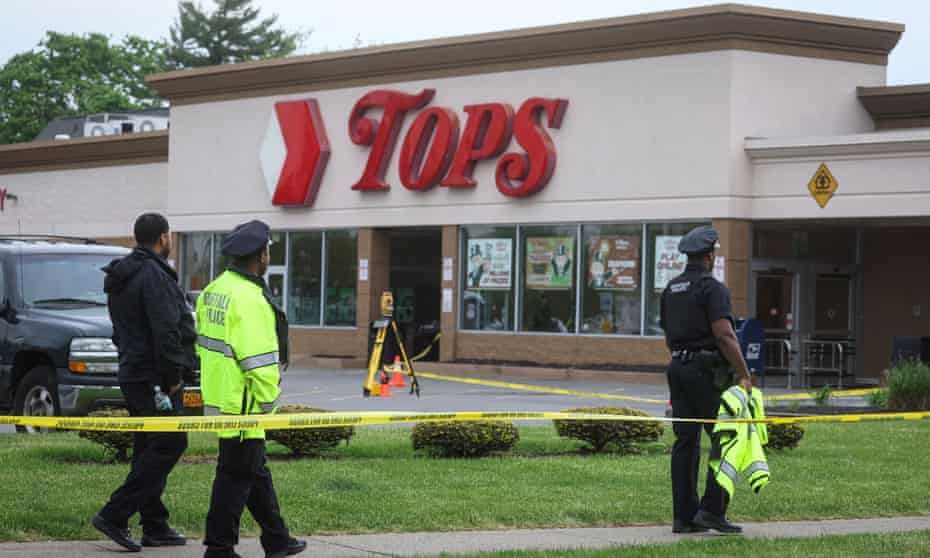 Members of the Buffalo police department work at the scene of a shooting at a Tops supermarket. Photograph: Brendan McDermid/Reuters