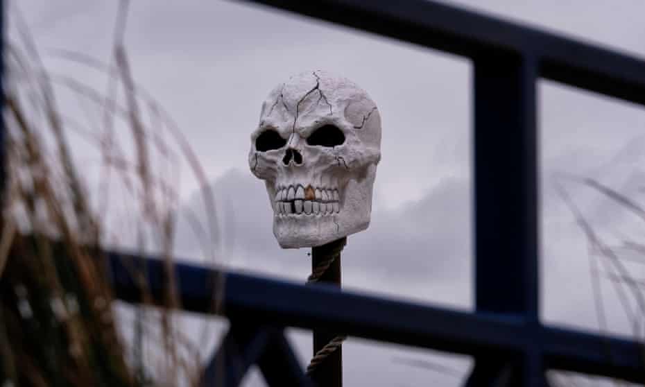 A skull overlooks Mablethorpe beach, and a throwback to the Campaign for Nuclear Disarmament protests of the 1980s. Photograph: John Robertson/The Guardian