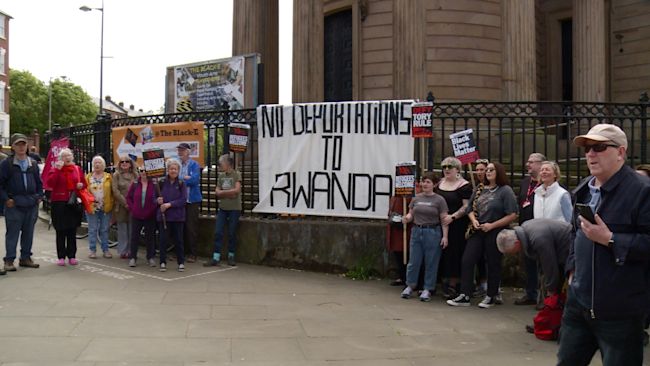 A protest has taken place in Liverpool over controversial plans to send refugees to Rwanda.