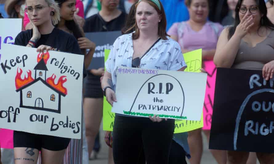 Pro-choice supporters hold signs at a rally outside the South Carolina statehouse. Photograph: Meg Kinnard/AP