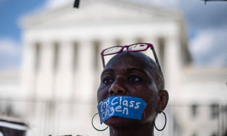 Police hold a pro-choice demonstrator to the ground in Los Angeles, California. Photograph: Vishal P Sing/Reuters