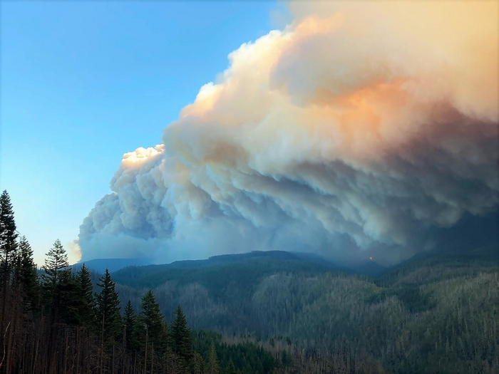 IMAGE: SMOKE PLUME FROM THE RIVERSIDE FIRE ON MOUNT HOOD NATIONAL FOREST, OREGON, IN SEPTEMBER 2020 view more