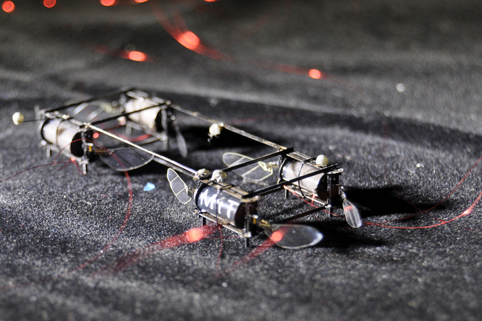 From there, they ran flight tests using a specially designed motion-tracking system. Each electroluminescent actuator served as an active marker that could be tracked using iPhone cameras. The cameras detect each light color, and a computer program they developed tracks the position and attitude of the robots to within 2 millimeters of state-of-the-art infrared motion capture systems.
