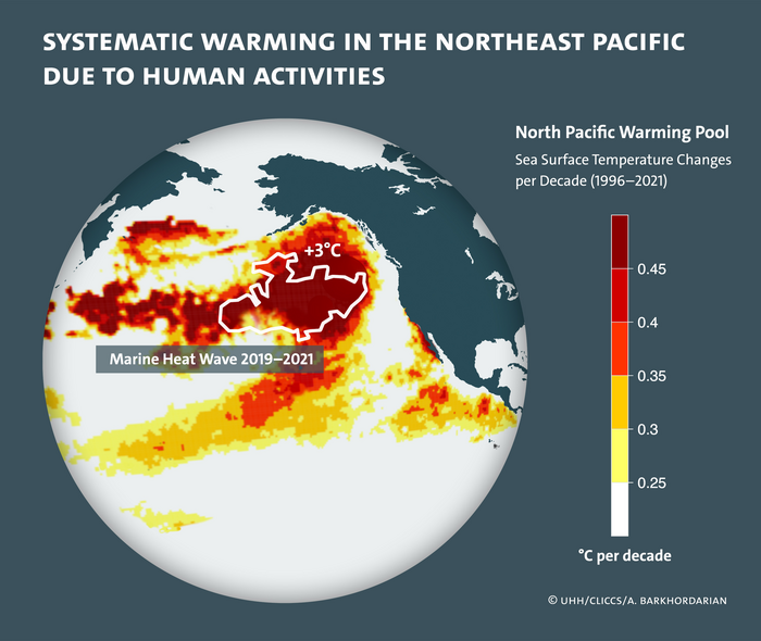 In a study just released in the journal Nature Communications Earth and Environment, Dr. Armineh Barkhordarian confirms that this systematic warming pool is not the result of natural climatic variations – but of human influences instead. “This warming pool will continue to increase the water temperature in the future, increasing both the frequency and intensity of local marine heatwaves. "The sharp increase in average water temperature is pushing ecosystems to their limits,” explains Barkhordarian, an expert on atmospheric science and member of Universität Hamburg’s Cluster of Excellence “Climate, Climatic Change, and Society” (CLICCS).