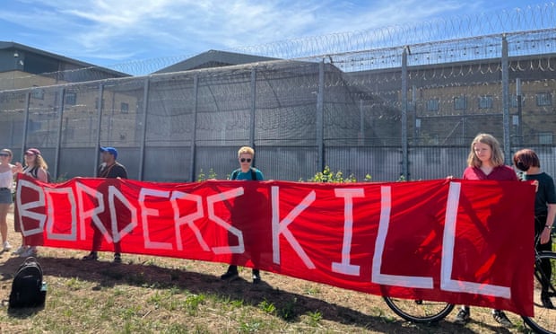 Protesters outside Colnbrook Immigration Removal Centre. Photograph: SOAS Detainee Support