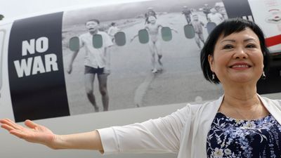 Phuc's iconic Associated Press photo, in which she runs with her napalm-scalded body exposed, was etched on the fuselage of the plane.