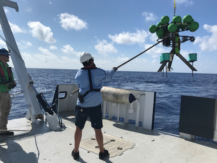 Grant and Award AnnouncementIMAGE: RESEARCHERS DEPLOY A MOORING, WHICH WILL HELP THEM MEASURE EXCHANGES OF WATERS. view more