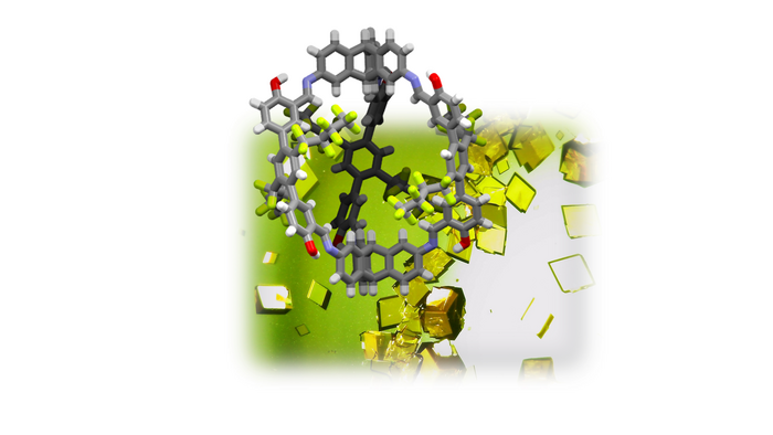 Peer-Reviewed PublicationIMAGE: IN THE BACKGROUND: LIGHT MICROSCOPY IMAGES OF THE SINGLE-CRYSTAL STRUCTURES OF THE SHAPE-PERSISTENT ORGANIC CAGE COMPOUND. IN THE FRONT: BALL-AND-STICK MODEL OF THE SINGLE-CRYSTAL STRUCTURE, GREY: CARBON, WHITE: HYDROGEN, RED: OXYGEN, BLUE: NITROGEN, GREEN: FLUORINE. view more