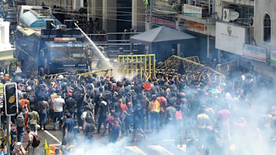 Police in Colombo on Friday fired tear gas and used a water cannon on student protesters. The students staged a sit-in overnight, with other protesters including healthcare workers, clergy, trade unions and opposition supporters joining them on Saturday, organisers told reporters.