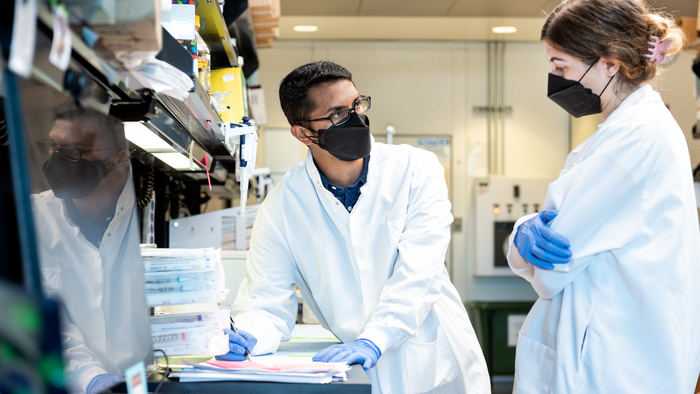 Peer-Reviewed PublicationIMAGE: A TEAM OF RESEARCHERS, INCLUDING ABDULLAH SYED (LEFT) AND ALISON CILING (RIGHT), USED VIRUS-LIKE PARTICLES TO IDENTIFY WHICH PARTS OF THE SARS-COV-2 VIRUS ARE RESPONSIBLE FOR ITS INCREASED INFECTIVITY AND SPREAD. view more