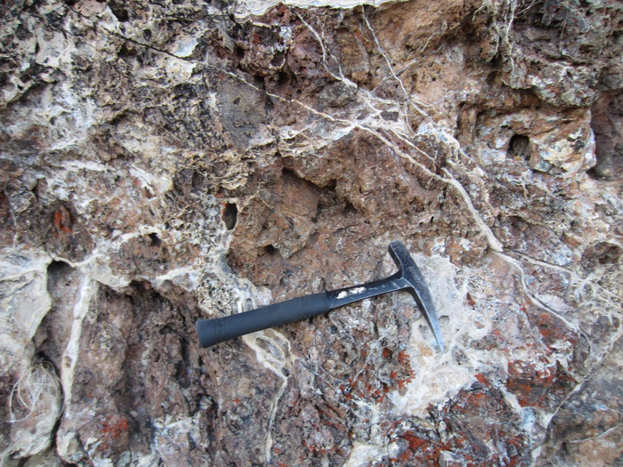 Peer-Reviewed PublicationIMAGE: OUTCROP OF CARBONATE-ALTERED MANTLE ROCK IN THE SAN ANDREAS FAULT AREA. A RECENT STUDY SHOWS THAT CARBON SEQUESTRATION IN MANTLE ROCKS MAY PREVENT LARGE EARTHQUAKES IN PARTS OF THE SAN ANDREAS FAULT. view more