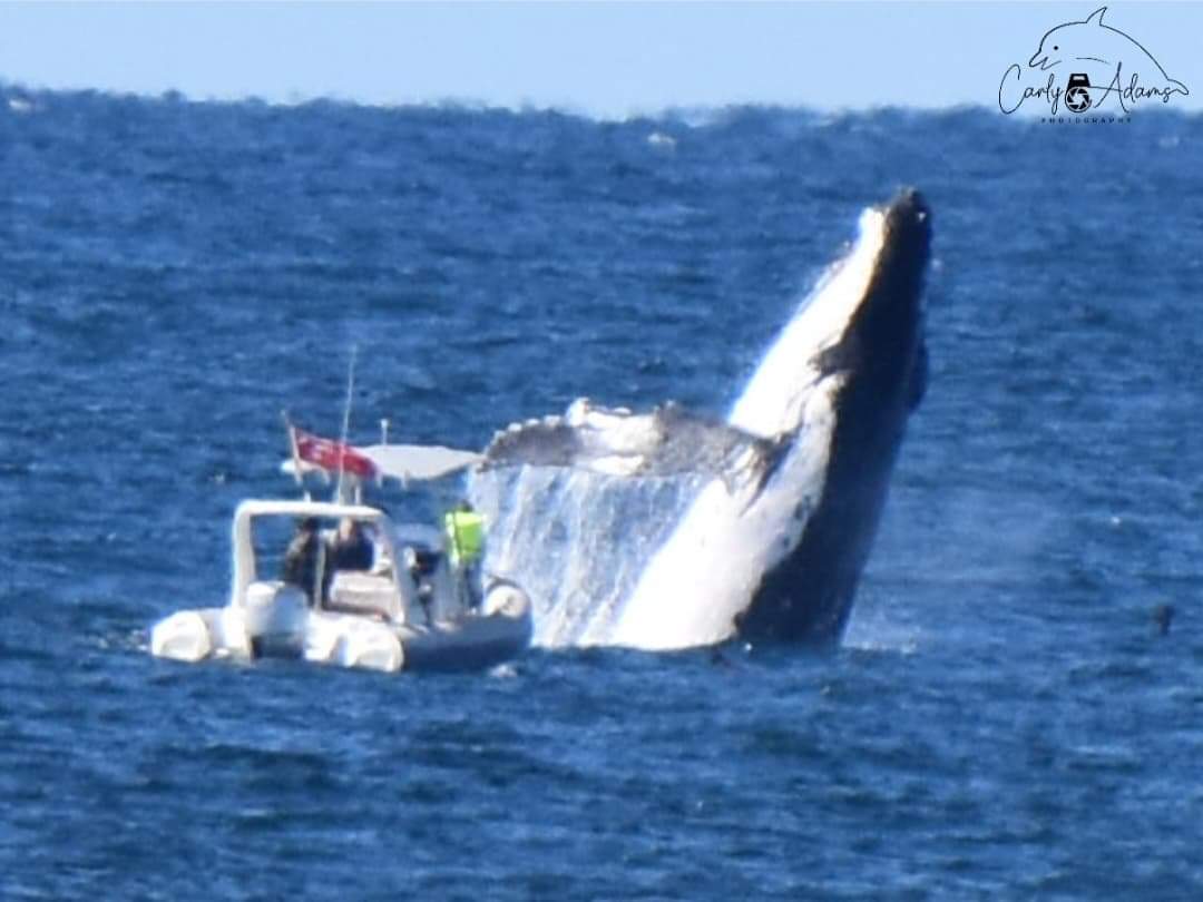 Key points:Photographer Carly Adams can't believe her luck, capturing a breaching whale close to a boat