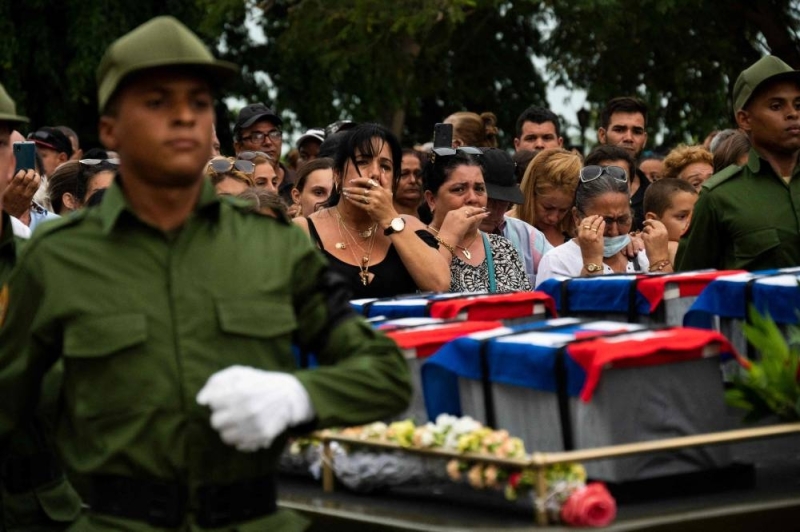 A long line of firefighters, soldiers and ordinary citizens solemnly filed past 14 coffins draped in the Cuban flag at a ceremony in Matanzas, some 100 kilometres (60 miles) east of the capital Havana.