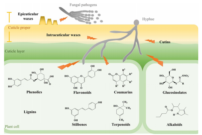 image: Physical barriers and phytochemicals involved in resistance of horticultural crops to fungal pathogens