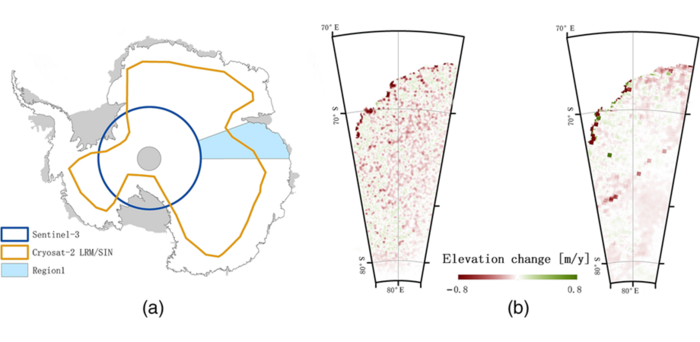 The data used in the study came from radar altimeters installed in CryoSat-2 and Sentinel-3, and corresponded to surface elevation changes in the ice sheet between 2016 and 2019. CryoSat-2, which was launched in 2010, provides greater coverage of the Antarctic ice sheet and has better accuracy in complex edge regions of ice sheets. In contrast, Sentinel-3, launched in 2016, offers higher resolution under most conditions and performs better in large flat areas.