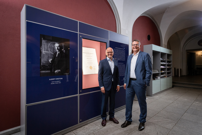 IMAGE: MICHAEL SCHAEPMAN, PRESIDENT UZH AND VIDAR HELGESEN, DIRECTOR NOBEL FOUNDATION (ON THE LEFT). view more