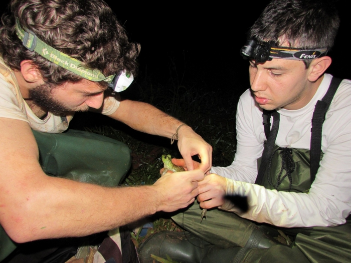 Peer-Reviewed PublicationIMAGE: RESEARCHERS COLLECTING FERAL BULLFROGS. STUDY CONFIRMED THE EXISTENCE OF AT LEAST TWO DIFFERENT POPULATIONS OF BULLFROGS view more