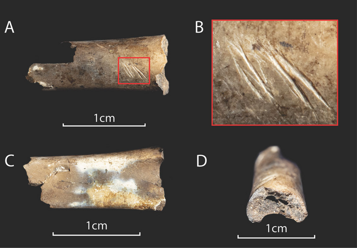 Peer-Reviewed PublicationIMAGE: CHENDYTES BONE FRAGMENTS WITH BURNING AND STONE TOOL CUT MARKS. view more