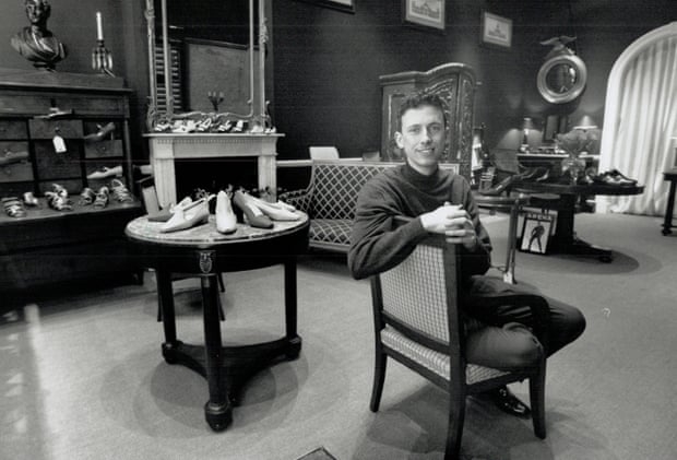 Once, this would have been Cox’s nightmare. “Getting up at 5am to do the gardening? When I was 30, I’d have been like: ‘What the fuck is wrong with you?!’” he says, and makes one of his bend-forward-at-the-belly big laughs. Back in the 90s and early 2000s, Cox, now 59, was shoemaker to the moneyed – through his high-end Patrick Cox line – and the masses, with his cheaper, mega-selling brand Wannabe, whose chunky loafers became the defining footwear of the era. Spindly stilettos by Manolo Blahnik might have made more appearances on Sex and the City, but at their peak Wannabe loafers sold 1m pairs a year. Cox’s handsome, impish face was frequently photographed at all the A-list parties. He was Elizabeth Hurley’s plus-one on the red carpet, best friends with Elton John and David Furnish. “I was the last one every night to hang up my disco shoes,” he says. He wasn’t nicknamed Party Pat by Janet Jackson for nothing.