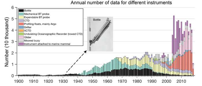 IMAGE: ANNUAL NUMBER OF OCEAN PROFILE OBSERVATIONS FOR DIFFERENT INSTRUMENTS. view more
