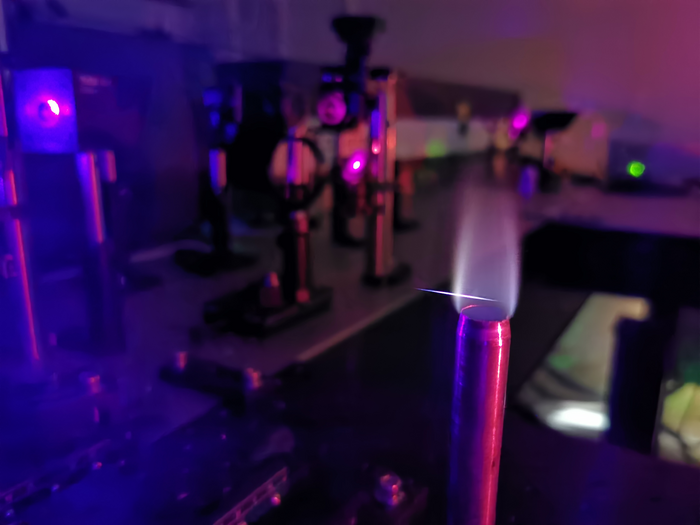 Peer-Reviewed PublicationIMAGE: RESEARCHERS DEVELOPED AN ANALYTICAL INSTRUMENT THAT USES AN ULTRAFAST LASER FOR PRECISE TEMPERATURE AND CONCENTRATION MEASUREMENTS OF HYDROGEN. THEY USED IT TO STUDY THE HYDROGEN FLAME SHOWN HERE. view more
