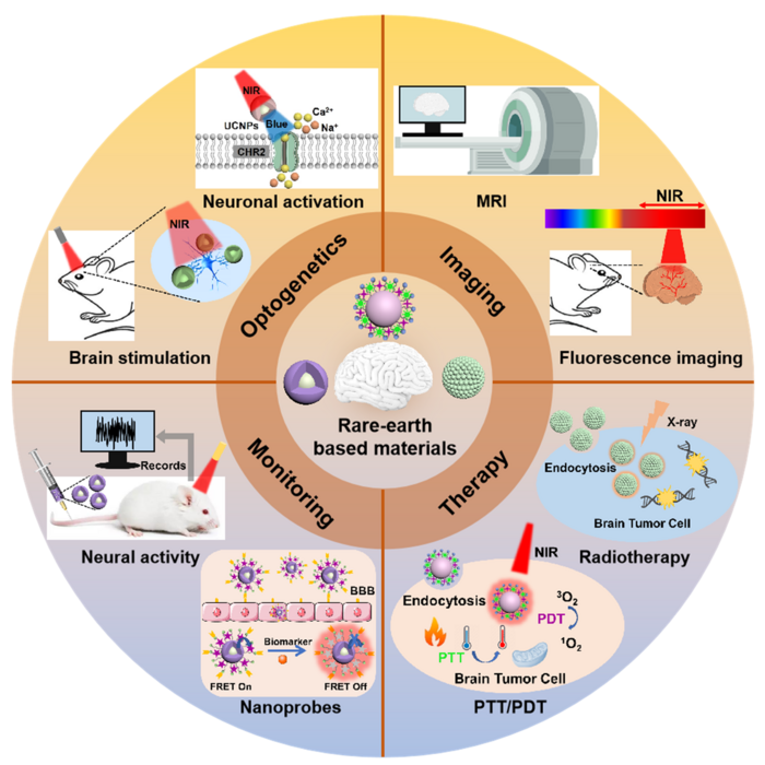 In a new review published in Light Science & Applications, a team of scientists, led by Associate Professor Fan Wang from State Key Laboratory of Rare Earth Resource Utilization, Changchun Institute of Applied Chemistry, Chinese Academy of Sciences, China, and co-workers have summarized the recent research and development of rare-earth based materials for brain imaging, therapy, monitoring, and neuromodulation.